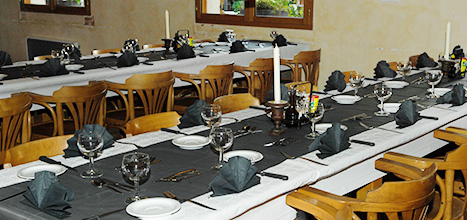 Het diner wordt een dag van te voren en op de dag zelf kenbaar gemaakt op de krijtborden. Naast de 3- of 4-gangen wordt ook de prijs van de maaltijd genoemd. Staat er vis op het menu dan is er ook een 'vlees' keuze aanwezig. Het diner vindt gezamelijk en gekleed plaats, aan grote lange tafels onder de overkapping, en bij een grote groep eters ook op het terras. Reserveren kan tot 16:00 uur.